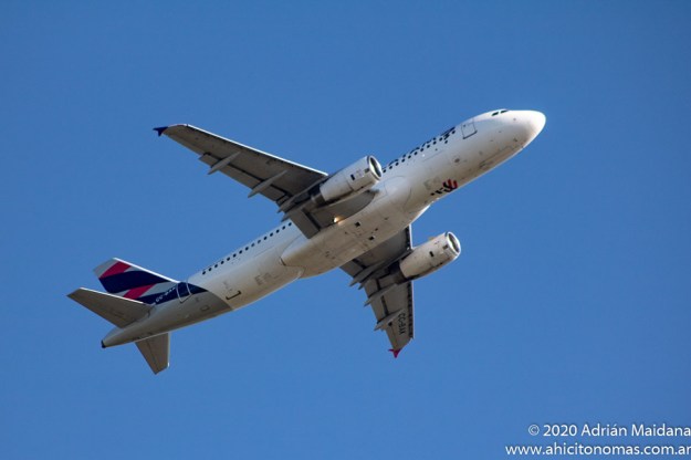 Con el logo de Latam Airlines en el piso, el A320 matrícula CC-BAK despegó hacia Santiago de Chile.
