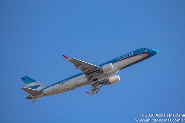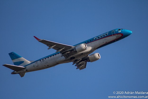 El Embraer 190 LV-CET, aun con el livery de la extinta marca Austral.